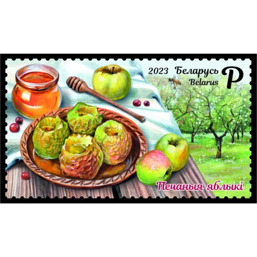 Stamp "Belarusian Cuisine. Baked Apples" / Marka "Belorusskaya kukhnya. Pechenye yabloki
